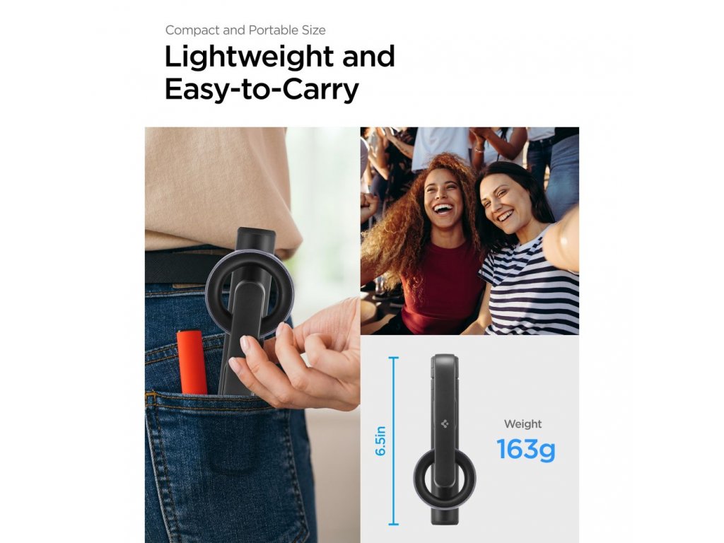 Selfie tyč s Bluetooth ovladačem a stojánkem Spigen S570W je multifunkčním pomocníkem na cestách při focení. Dokáže skvěle zachytit vaše autoportréty, poslouží jako stativ a dokáže fotografovat i vzdáleně. Rychlé uchycení telefonu zajišťuje silný integrovaný magnet MagSafe.