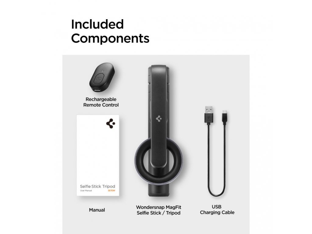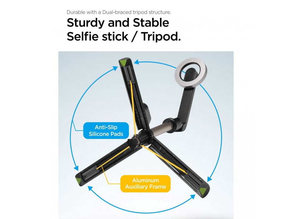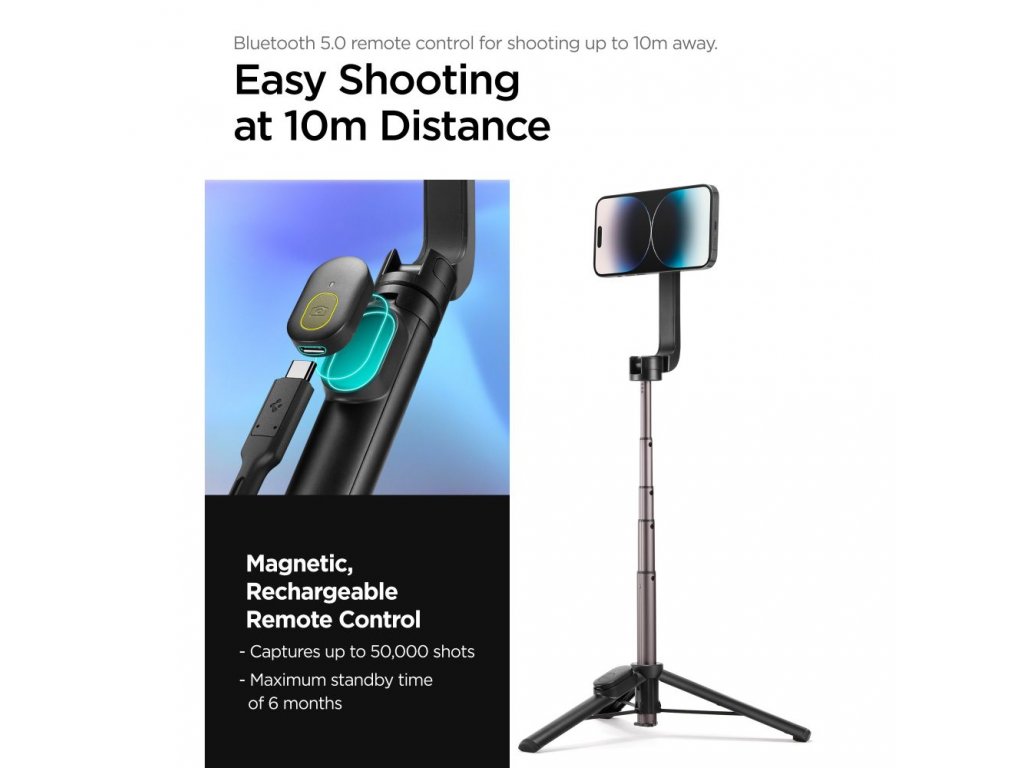 Selfie tyč s Bluetooth ovladačem a stojánkem - Spigen, S570W MagSafe Black