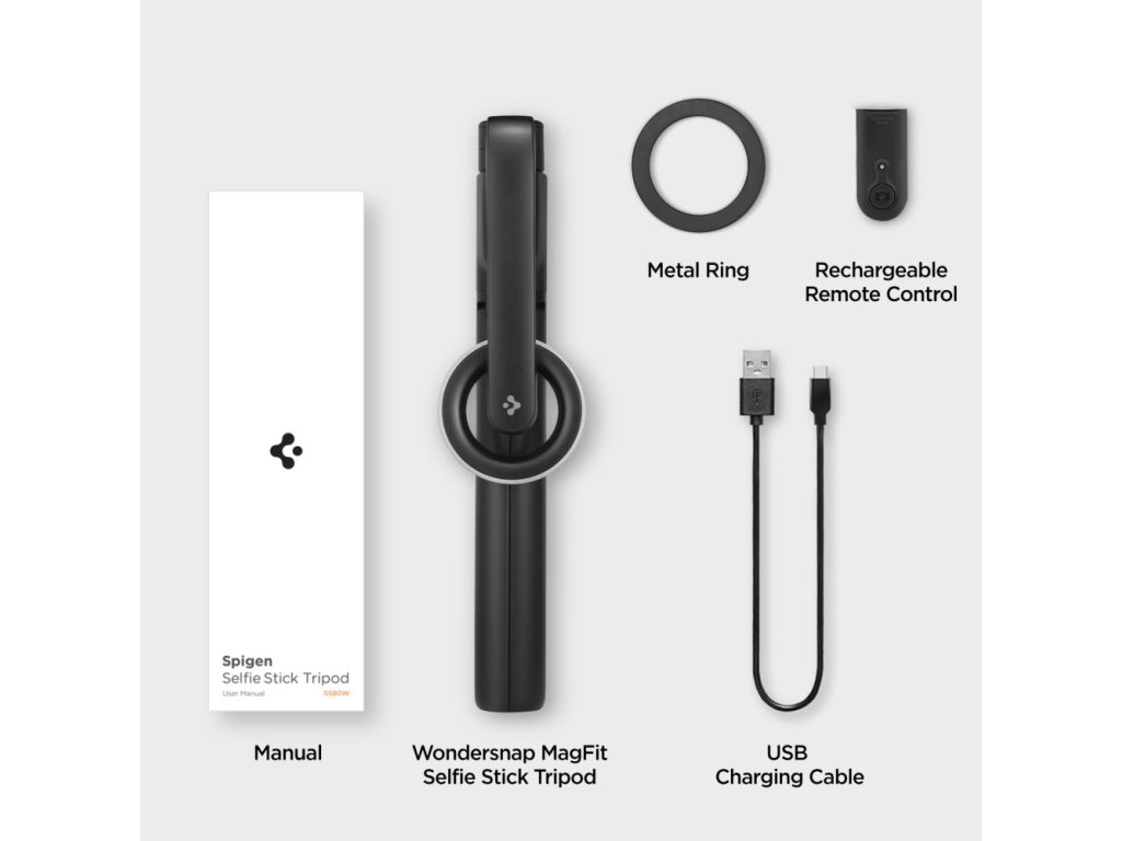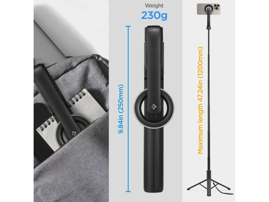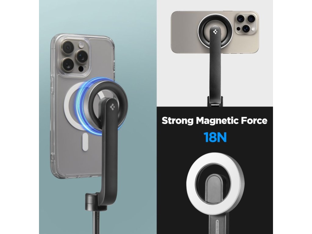 Selfie tyč s Bluetooth ovladačem a stojánkem - Spigen, S580W MagSafe Black