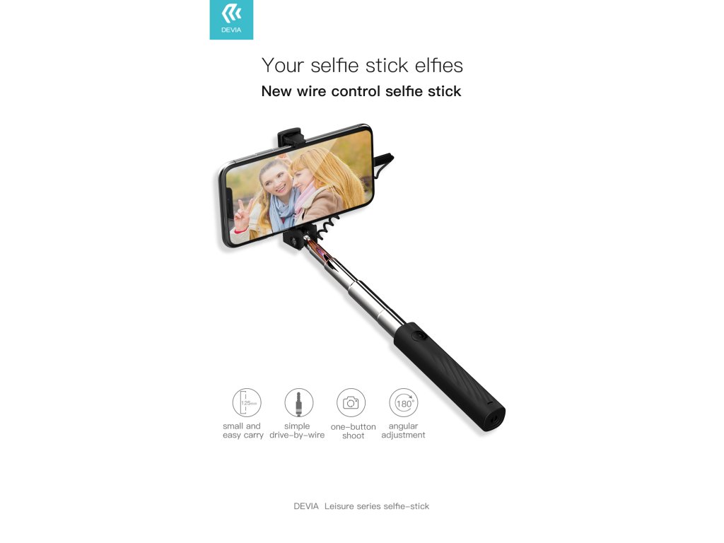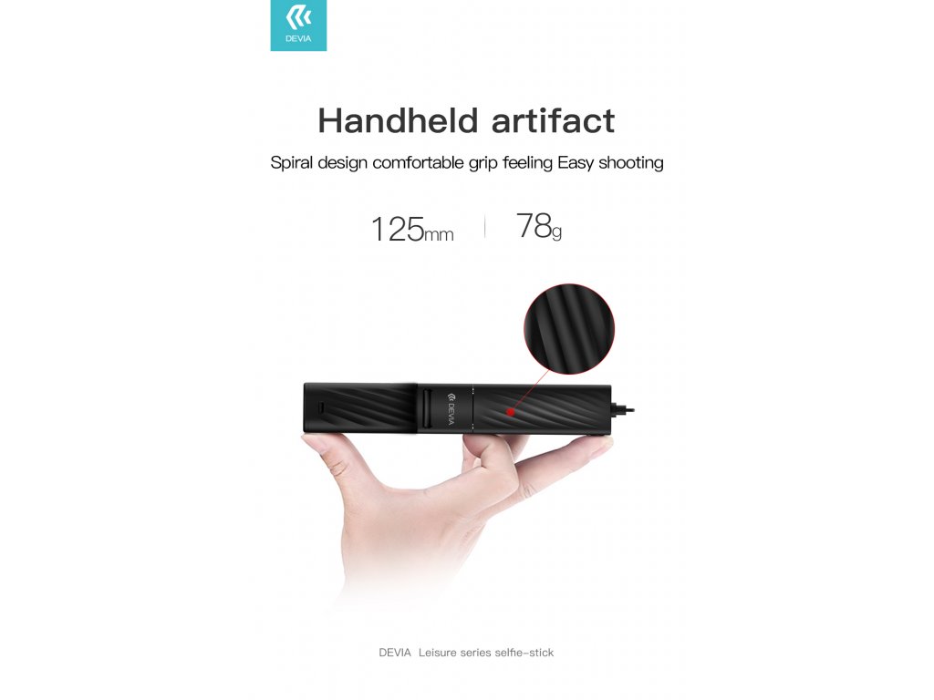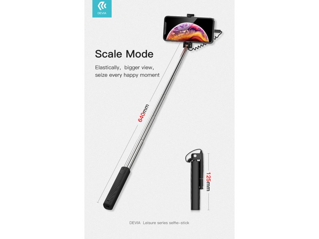 Devia selfie tyč pro iPhone pojme libovolný telefon značky Apple do 6,5palcové velikosti jeho displeje. Díky váze 78 gramů vás pak na vašich cestách nijak nezatíží. Lépe s ní budete pořizovat nejen autoportréty, ale i snímky z nadhledu fotografované scény. Teleskopickou tyč totiž lze velice snadno prodloužit o dalších 64 cm.