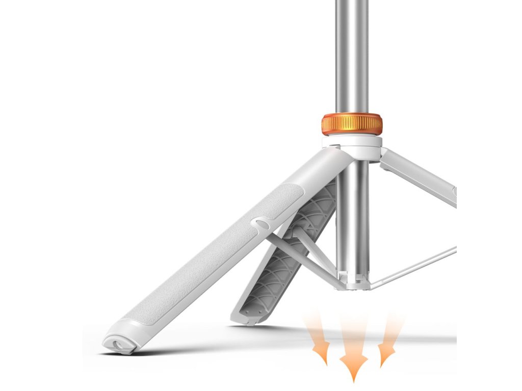 Stojánek pro iPhone je opatřen třemi nohami, které udrží stabilně selfie tyč v pozoru a s nasazeným telefonem. Nohy lze jednoduše zase složit a získat tak rukojeť pro záběry z ruky.