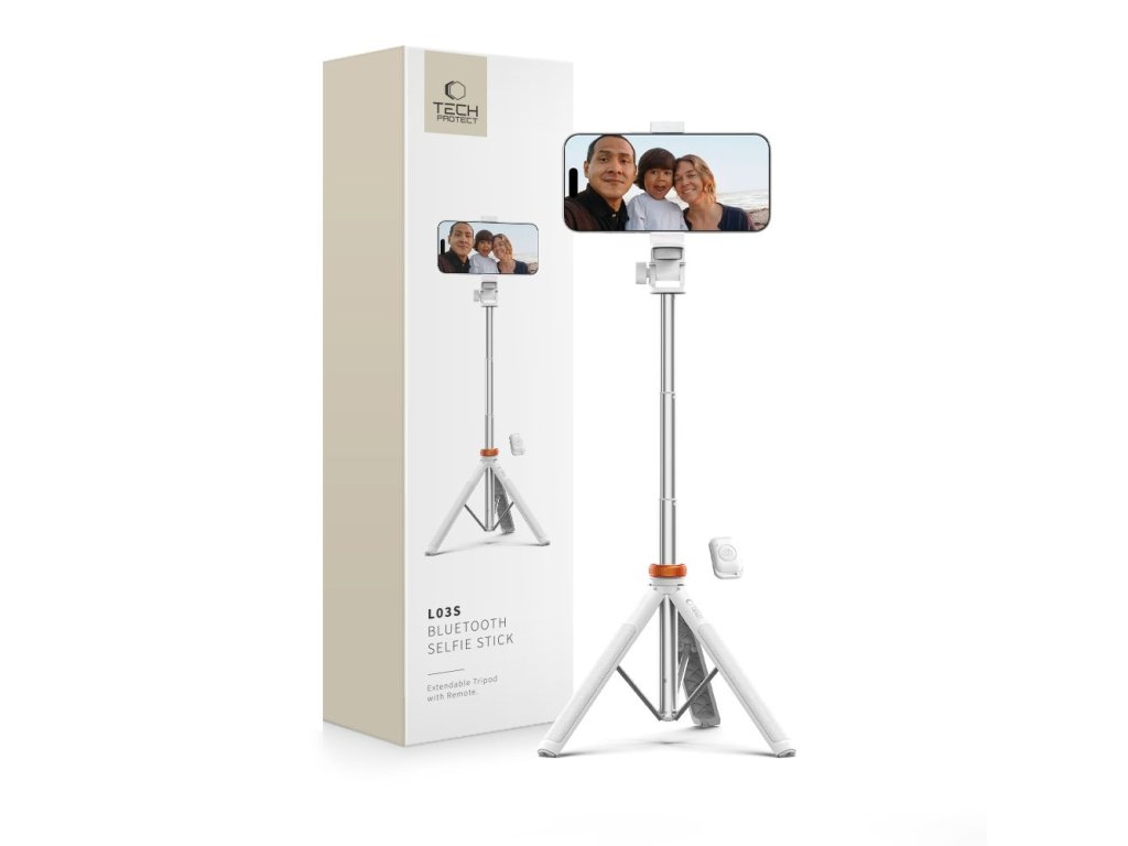 Selfie tyč s Bluetooth ovladačem a stojánkem - Tech-Protect, L03S Selfie Stick Tripod White
