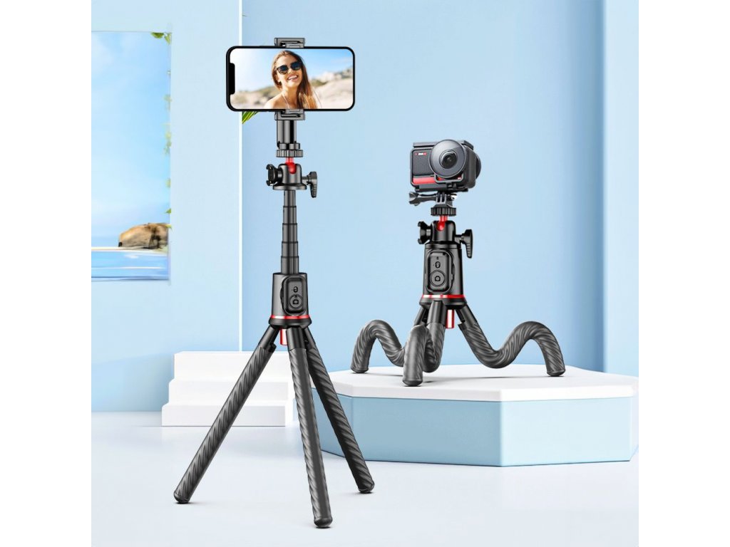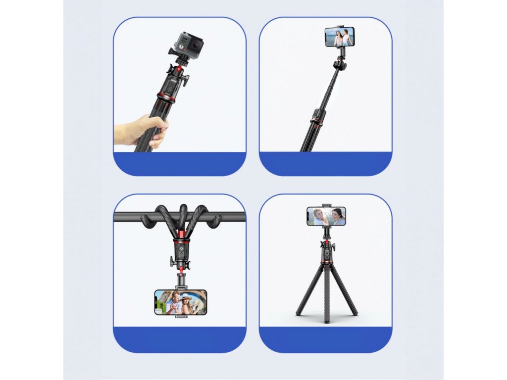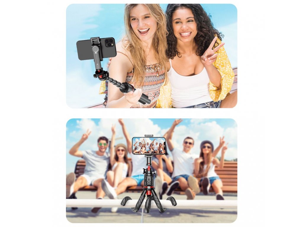 Selfie s teleskopickou tyčí umožňuje její prodloužení na délku 53,7 cm. Díky tomu můžete snadno pořizovat širokoúhlé záběry nebo fotografovat skupinu přátel. Flexibilní nohy stativu umožňují snadné přizpůsobení různým povrchům a poskytují pevnou oporu vašemu zařízení. Flexibilita stativu vám také umožňuje experimentovat s různými úhly a perspektivami, čímž se vám otevírají nové možnosti pro vytváření jedinečného a zajímavého obsahu. Ať už natáčíte outdoorové aktivity, vytváříte vlogy nebo pořizujete záběry krajiny, stativ Tech-Protect L07S vám poskytne stabilitu a oporu potřebnou k dosažení skvělých výsledků.