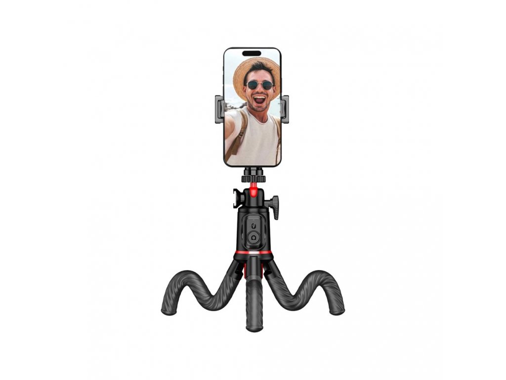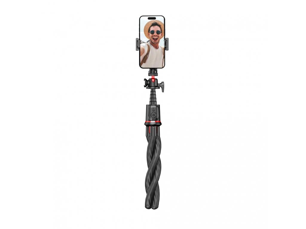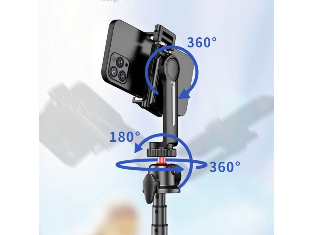 Pevně konstruovaná rukojeť zaručuje stabilitu při pořizování fotografií a videí. Vaše zařízení bude bezpečně upevněno bez rizika náhodného pádu. Hlava selfie tyče se může otáčet o 360 stupňů, což vám umožní snadno nastavit úhel záznamu podle vašich potřeb.