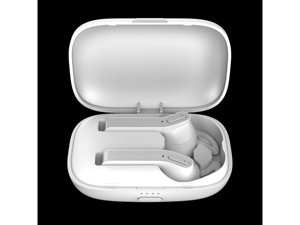 Sluchátka lze používat klasicky v páru na poslech hudby nebo jen jedno jako handsfree, protože má v sobě mikrofon. Hrát vám na jedno nabití bude 2 hodiny. Kapacita interní baterie je 45 mAh. Nabíjecí pouzdro má uvnitř zabudovanou 450mAh baterii, takže zvládne obě sluchátka nabít zhruba 5x. Stav baterie pouzdra je zobrazena pomocí LED diod umístěných na přední straně.