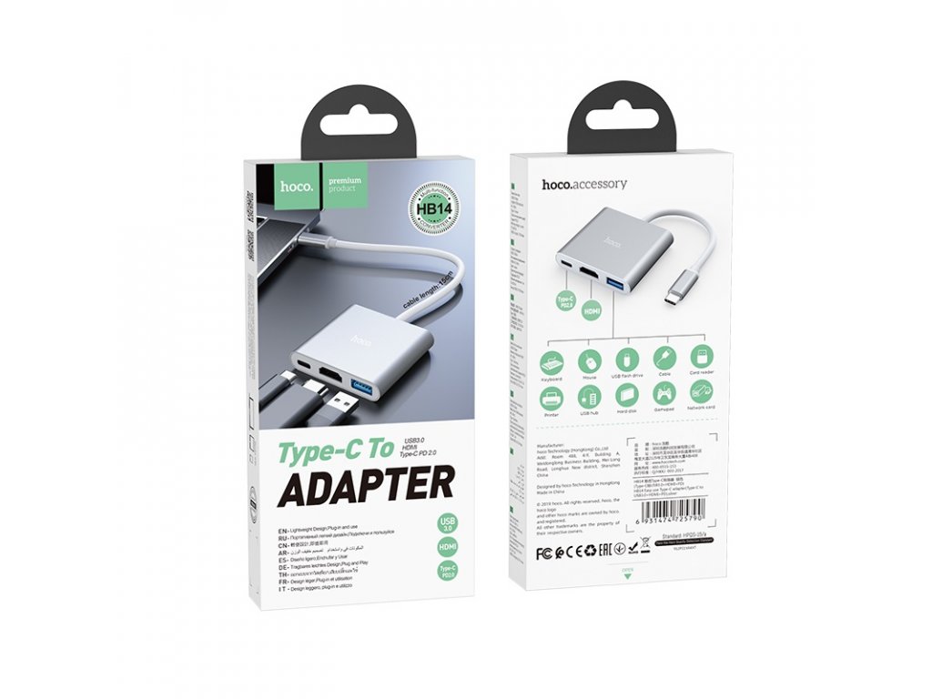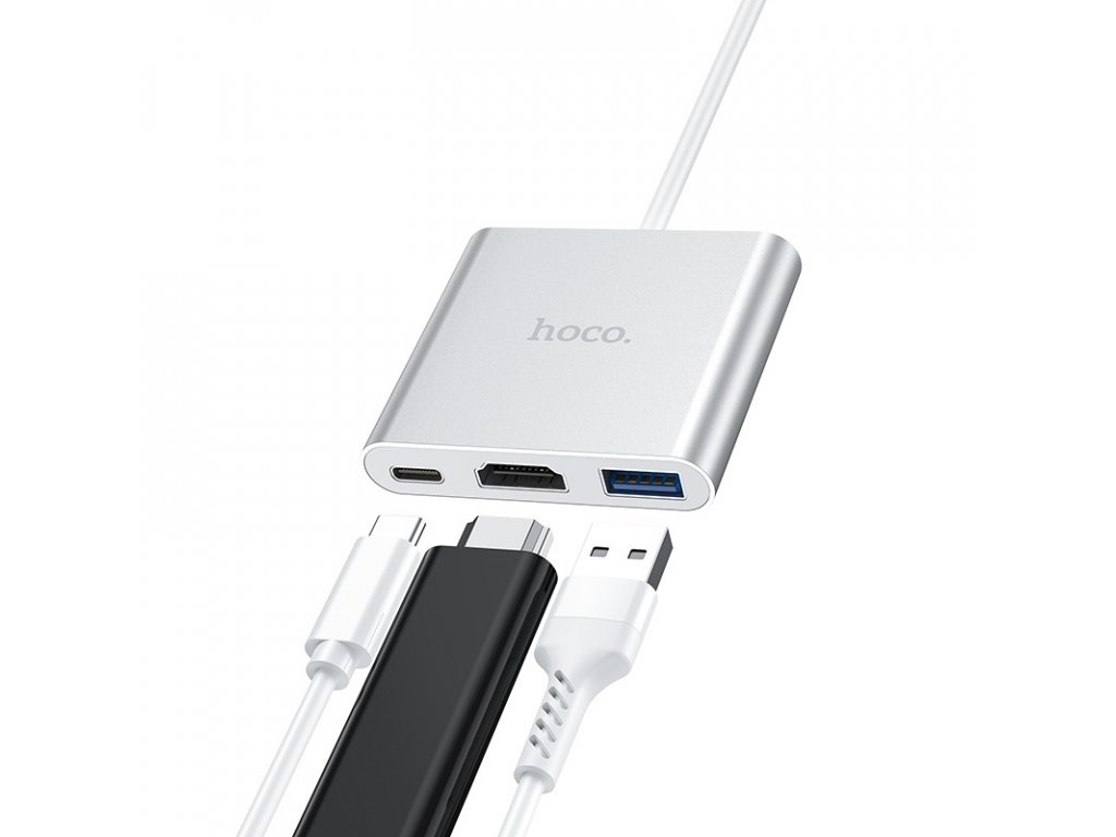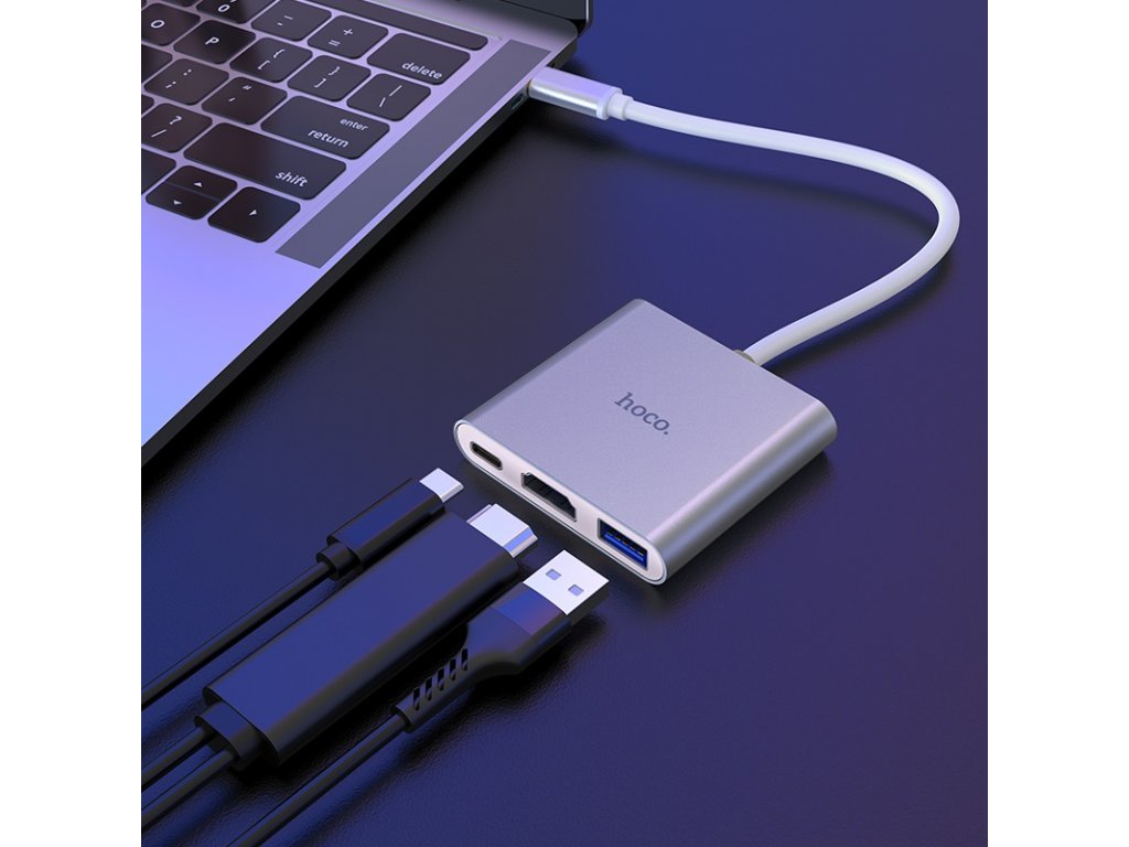 Adaptér USB-C Hoco HB14 je ideálním pomocníkem pro rozšíření jednoho USB-C portu na další užitečné zdířky. Budete mít tak navíc klasické USB, HDMI výstup na monitor a ještě jedno USB-C.