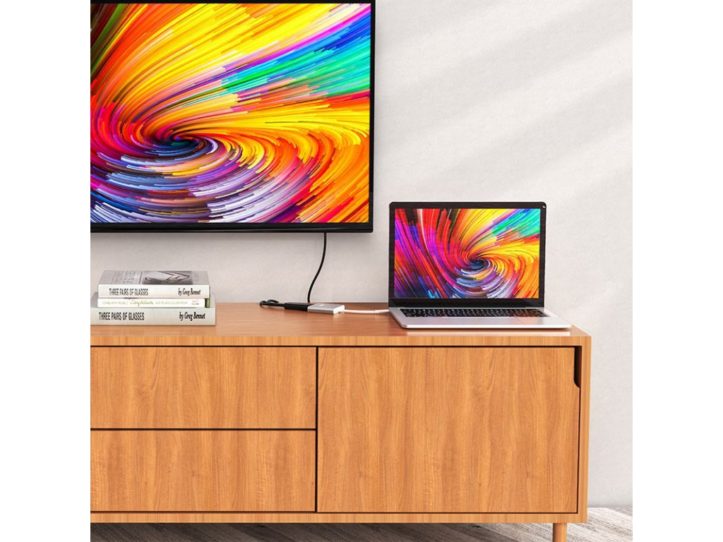 HDMI adaptér pro Mac nebo počítač s Windows je zase výborným řešením na propojení monitoru, projektoru nebo televize s počítačem. Rozšíříte si tím pracovní plochu a získáte vyšší efektivitu. Další USB-C port na redukci podporuje nabíjení až do výkonu 67 W, takže i v případě, že budete mít na počítači všechny USB-C konektory obsazené, můžete stroj nabíjet.