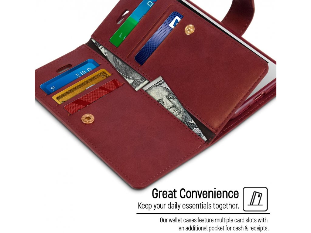 Kryt pro iPhone Mercury je otevírací pouzdro, do kterého se vejde i drobná hotovost nebo platební karty. Přední strana se odklápí a chrání displej telefonu. I v zavřeném stavu můžete telefonovat, protože v horní části je výřez na reproduktor. Zadní část zase disponuje otvorem pro fotoaparát.