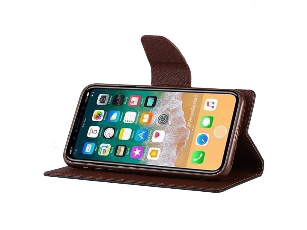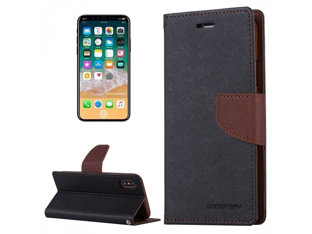 Pouzdro / kryt pro iPhone XS / X - Mercury, Fancy Diary BLACK/BROWN