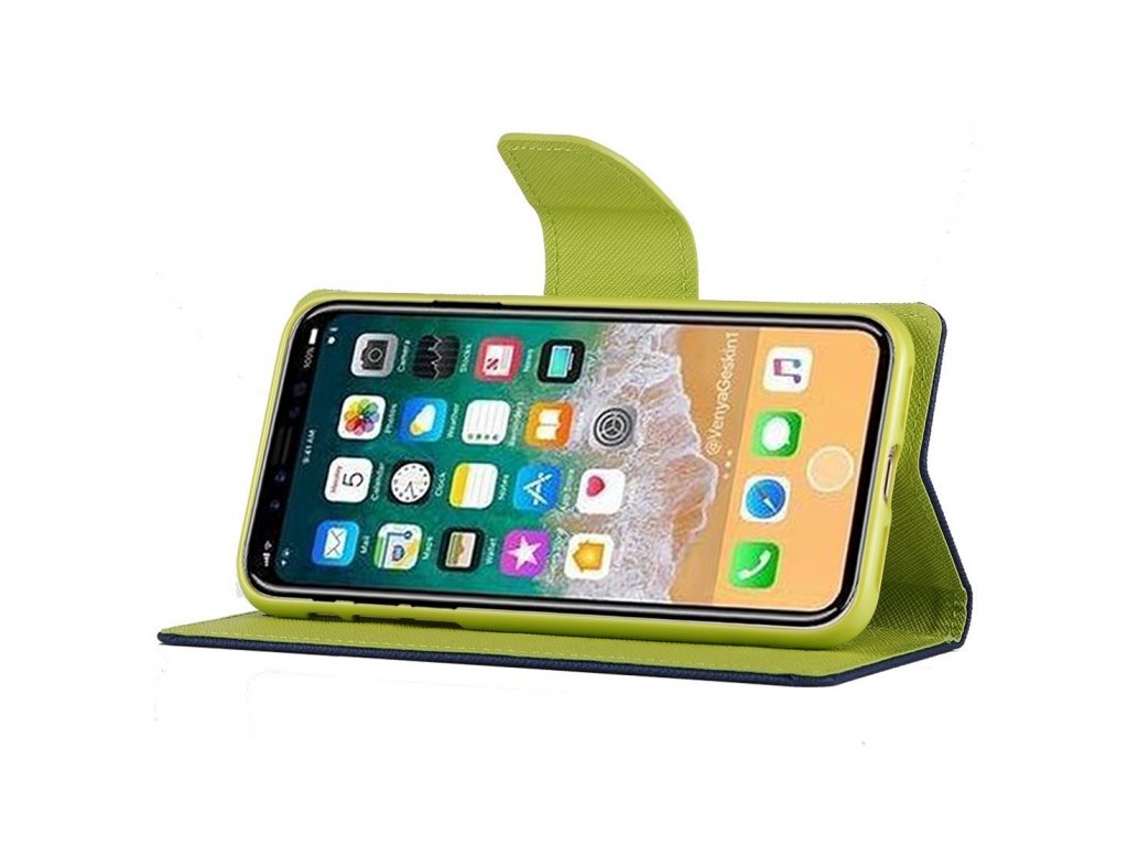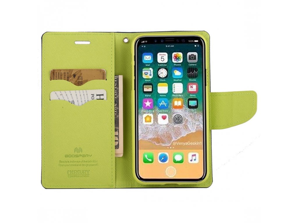 Pouzdro / kryt pro iPhone XS / X - Mercury, Fancy Diary NAVY/LIME